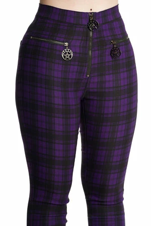 These high waist skinny trousers have checked design, front zipped pockets, back pockets, a figure accentuating shape, d-ring details and it fastens with a zipper at the front.