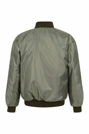 The jacket has a crew neckline, long sleeves, pockets, ribbed cuffs, zip closure and a figure accentuating shape.