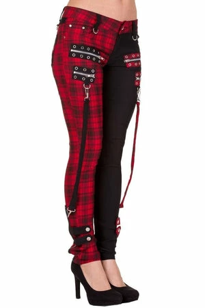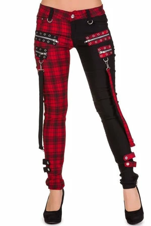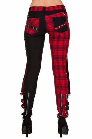Rock like the party will never end in these “Jetsetter” trousers from Banned. Made from 50% cotton and 45% polyester 5% elastane with black and tartan decorative zips and buckles.