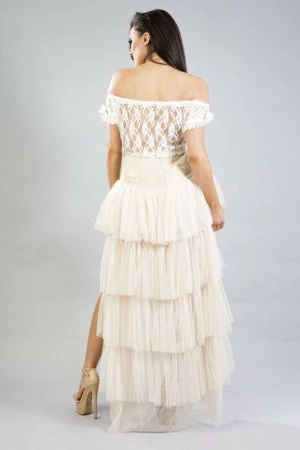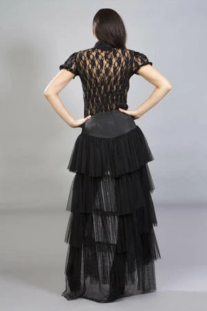 Burleska Denise Bustle Skirt In Mesh Net & Taffeta