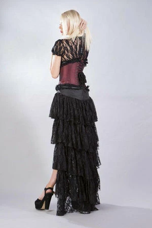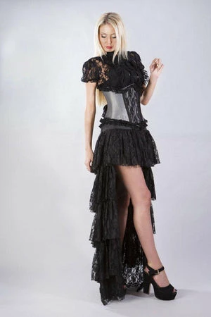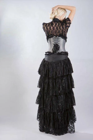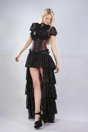 This Elizium steel boned underbust taffeta corset with black lace has clip fastening and back lace fastening with modesty panel.