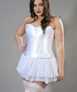 This Glamour overbust satin plus size corset has zip fastening, laces and modesty panel at the back.