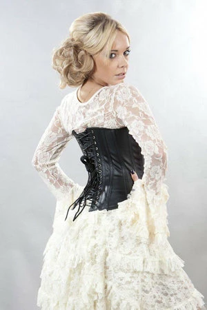 This spiffylicious steampunk or gothic corset from Burleska, can be worn with a top or on its own for a great alternative look. The design is available in brown matte vinyl and black matte vinyl.