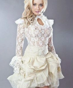 This Queen long sleeve, stretch lace gothic top has frilled cuffs, shoulders and collar and a flattering fit.