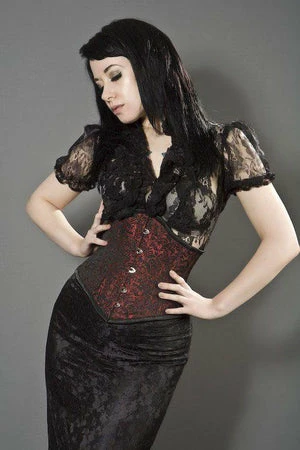 This seductive gothic corset from Burleska,is perfect for looking like a diva at those posh events! The design is available in red brocade, silver brocade, black brocade and purple brocade.