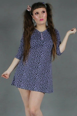 This mini dress has leopard print, short sleeves, a collared neckline and a flattering fit.