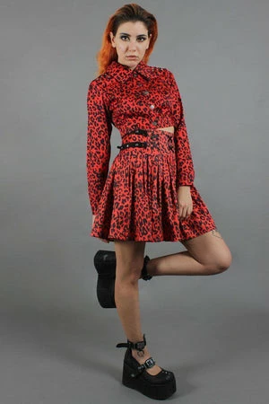 The pencil mini skirt has leopard design, pleats detail a flattering fit, buckle detail and it fastens with a zipper at the side.