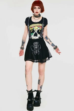 A morbidly funny printed t-shirt from Jawbreaker, with a zombie burger design of a skull in a burger with cheese, bacon and pickles dripping over the forehead and down the eye-sockets, looks delicious!
