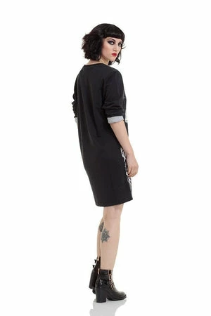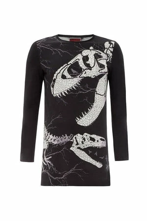 A superb unisex black long sleeved sweatshirt with a fearsome dinosaur bones print. This top is made in unisex sizes, for a men’s longline relaxed fit t-shirt/sweatshirt or a ladies sweater dress.