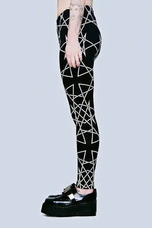 For that added gothic edge these black leggings from Long Clothing have a striking geometric infinity print and a stretchable fit.