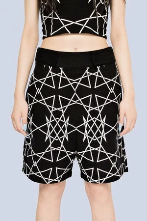 These infinity black shorts from Long Clothing have an awesome alternative edge, with a geometric infinity design and velco fastening for an adjustable fit.