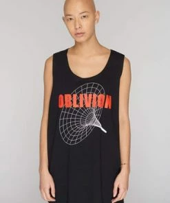 This is a fierce black, unisex, vest from Long Clothing which has a mystical white spiderweb at the front and bold red ”OBLIVION” caption.
