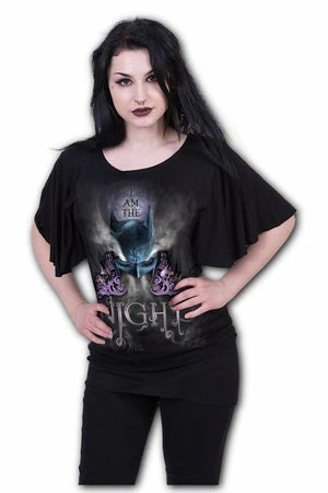 This superfly gothic top from Spiral Clothing, can be worn with black flowing gothic skirt or a pair of black trousers for a rock chick look!