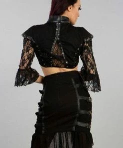 Burleska Ines Steampunk Bolero Shrug In Black Twill And Black Matte