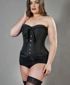 Burleska Takara Overbust Corset With Straps In Black Twill And Silver Spikes
