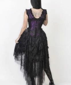 Burleska Steampunk Underbust Lace Up Corset In Black Brocade