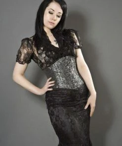 Burleska Sarah Long Sleeve Victorian Top In Lycra And Lace Overlay