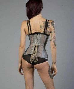 Burleska Steampunk Underbust Lace Up Corset In Black Brocade