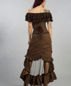 Burleska Elvira Long Gothic Victorian Skirt In Brown Gold Scroll And Coffee Matte