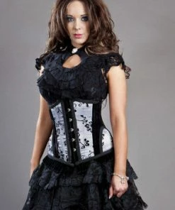 Burleska Petra Long Line Steel Boned Underbust Corset In Satin Flock
